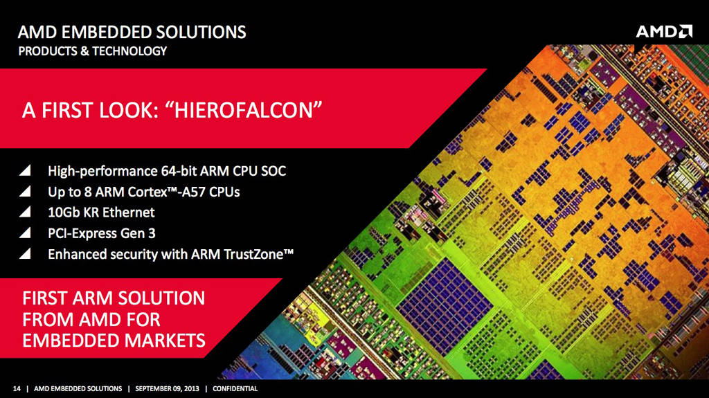 “En colaboración con AMD y Aricent estamos creando un enfoque flexible, eficiente y abierto para satisfacer las necesidades de los suscriptores de telecomunicaciones y cumplir los requerimientos de desempeño para que los operadores de telecomunicaciones puedan implementar infraestructuras de rápida evolución”, dijo Charlene Marini, vicepresidente de mercadotecnia del segmento de tecnología integrada en ARM. “La solución NFV en el SoC ‘Hierofalcon’ basado en ARM de 64 bits de AMD proporciona plataformas eficientes para cumplir las crecientes demandas de los suscriptores y los operadores por igual”.