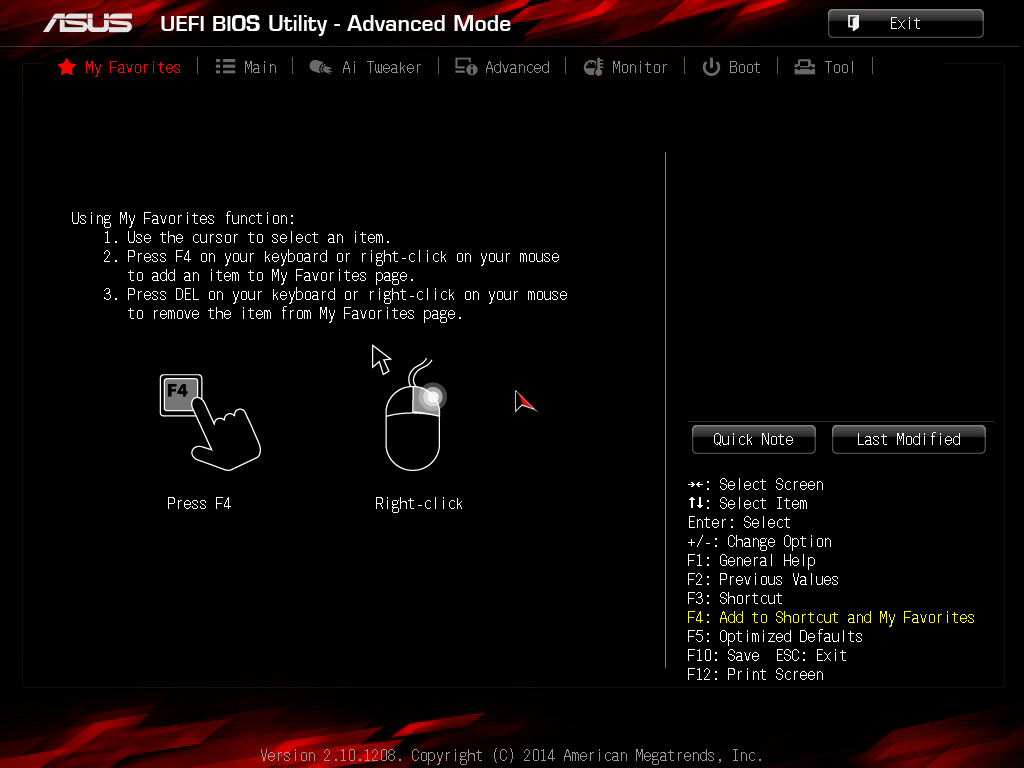 El UEFI BIOS de la B85-Pro Gamer conserva la combinación de colores rojo con negro, misma que se asemeja bastante a la usada en la línea ROG, nos presenta una interfaz cuidadosamente ordenada y muy atractiva, agrupada por funciones y con una breve explicación que la hace increíblemente intuitiva.