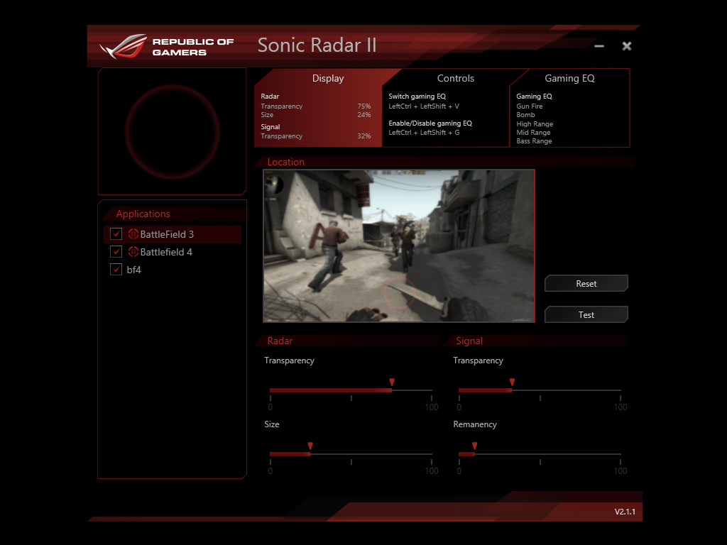 Sonic Radar II, es otra de las características heredadas de la línea ROG, esta utilidad está pensada especialmente para juegos de disparos en primera persona, ayudándote a ubicar la posición precisa del enemigo mediante el sonido, mostrando los pasos o disparos en un radar que nos indica donde se encuentra el objetivo.