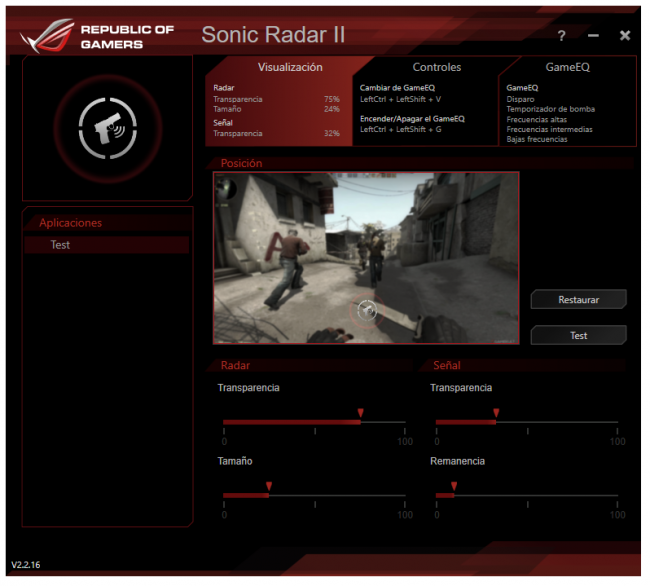 Sonic Radar II es un programa que coloca un radar de sonido en tu juego favorito para indicarte la posición de tu enemigo. Tiene soporte para una larga lista de juegos y diferentes perfiles de captación. Puedes identificar desde disparos de rifle hasta los pasos de tus enemigos.