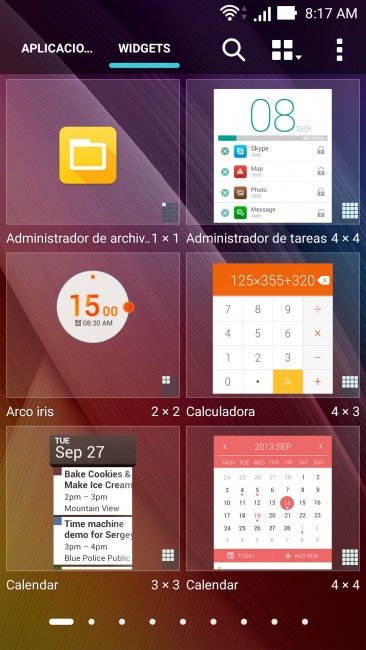 La pantalla de inicio del Zenfone Selfie exhibe un widget anunciando la hora, fecha y clima. El dock alberga accesos directos el Marcador Rápido, Mensajería, Navegador y Cámara. Pero ASUS tomó la libertad de agrupar sus aplicaciones y las de Google en carpetas, así como dejar accesos directos al Correo y Play Store. Presionando el icono central del dock nos otorga acceso al cajón de aplicaciones. En general, los iconos del ZenUI presumen una apariencia plana pero muy moderna.