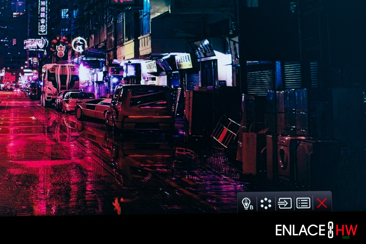 Al presionar cualquier botón se mostrarán los 5 iconos del Menú OSD, una vez en el menú nos encontramos con una interfaz sumamente limpia e intuitiva.