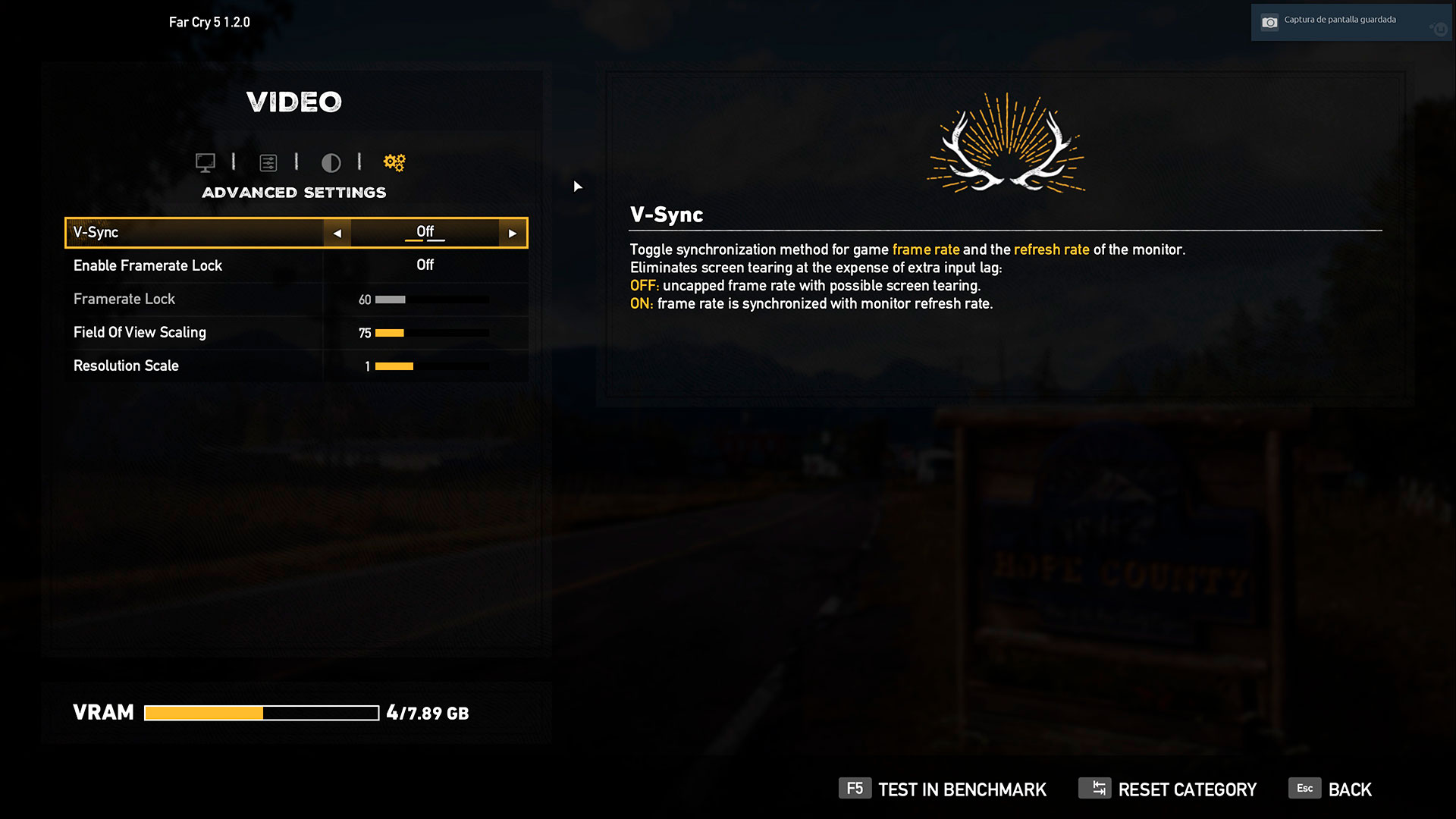 FarCry 5 cuenta con su propio benchmark interno y es el que se utilizó para las pruebas. En cuanto a calidad, empleamos el ajuste Ultra. Se puede visualizar en las opciones del ajuste en las siguientes capturas.