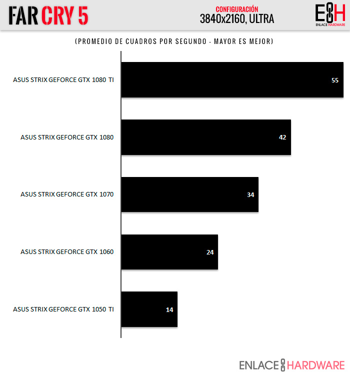 Probamos el videojuego utilizando el ajuste máximo disponible ya que este nos proporciona un resultado del rendimiento máximo que puede esperarse de cada tarjeta gráfica. Si el usuario desea obtener un resultado mayor que los números de las gráficas, puede utilizar un ajuste menor o deshabilitar algunas opciones para aumentar el rendimiento.