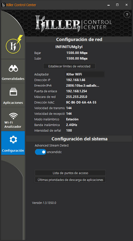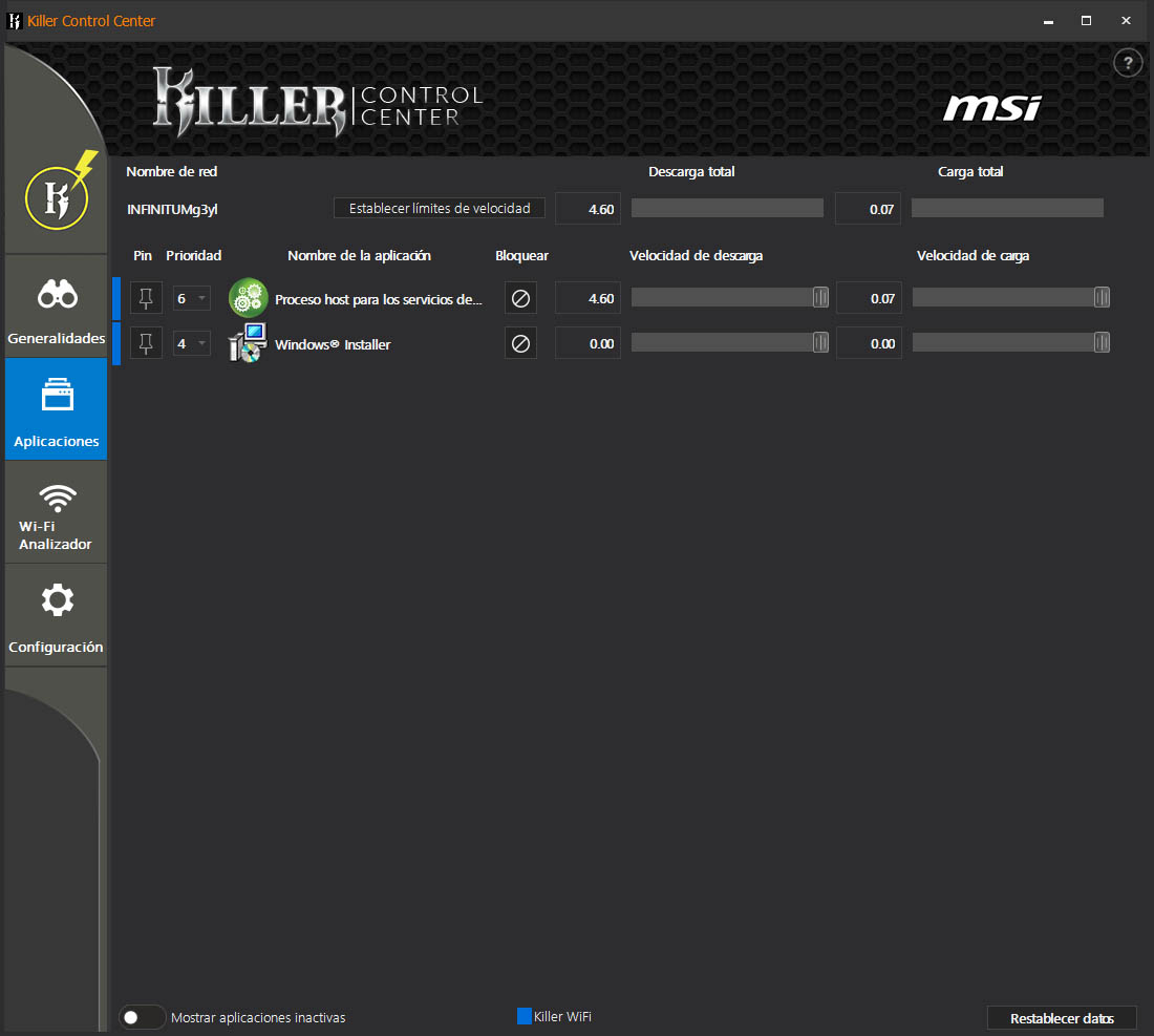 Lo primero que uno ve al ejecutar el programa MSI Dragon Center es el Monitor de sistema. Como su nombre indica, tiene como función primordial proporcionar al consumidor información sobre el estado del equipo, así como la utilización de los diferentes componentes, sus temperaturas de operación y otros parámetros como la carga de las conexiones a internet por Wi-Fi o Ethernet.