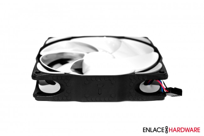 Enfocándonos en la estética de esta familia de ventiladores, nos encontramos con un diseño denominado como Bionico, el cual cuenta con 6 aspas de color blanco, las cuales se unen en sus extremos, dándole un aspecto estético como nunca antes habíamos visto, a lo largo de la salida de las aspas encontramos un patrón aerodinámicamente optimizado de canales tipo dentados, este mismo diseño lo encontramos en la parte interna del marco y tiene como principal objetivo mejorar el flujo de aire.