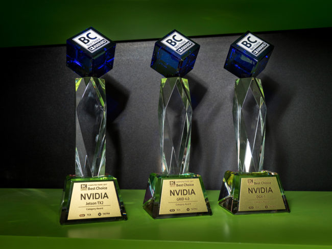 NVIDIA SHIELD TV™ obtuvo el premio a la innovación y al mejor diseño de Computex. Los premios Mejor Elección se entregaron a la supercomputadora de inteligencia artificial NVIDIA Jetson™ TX2 en un módulo, a la plataforma de virtualización de gráficos NVIDIA GRID™ 4.0 y a la supercomputadora de inteligencia artificial NVIDIA DGX-1™.