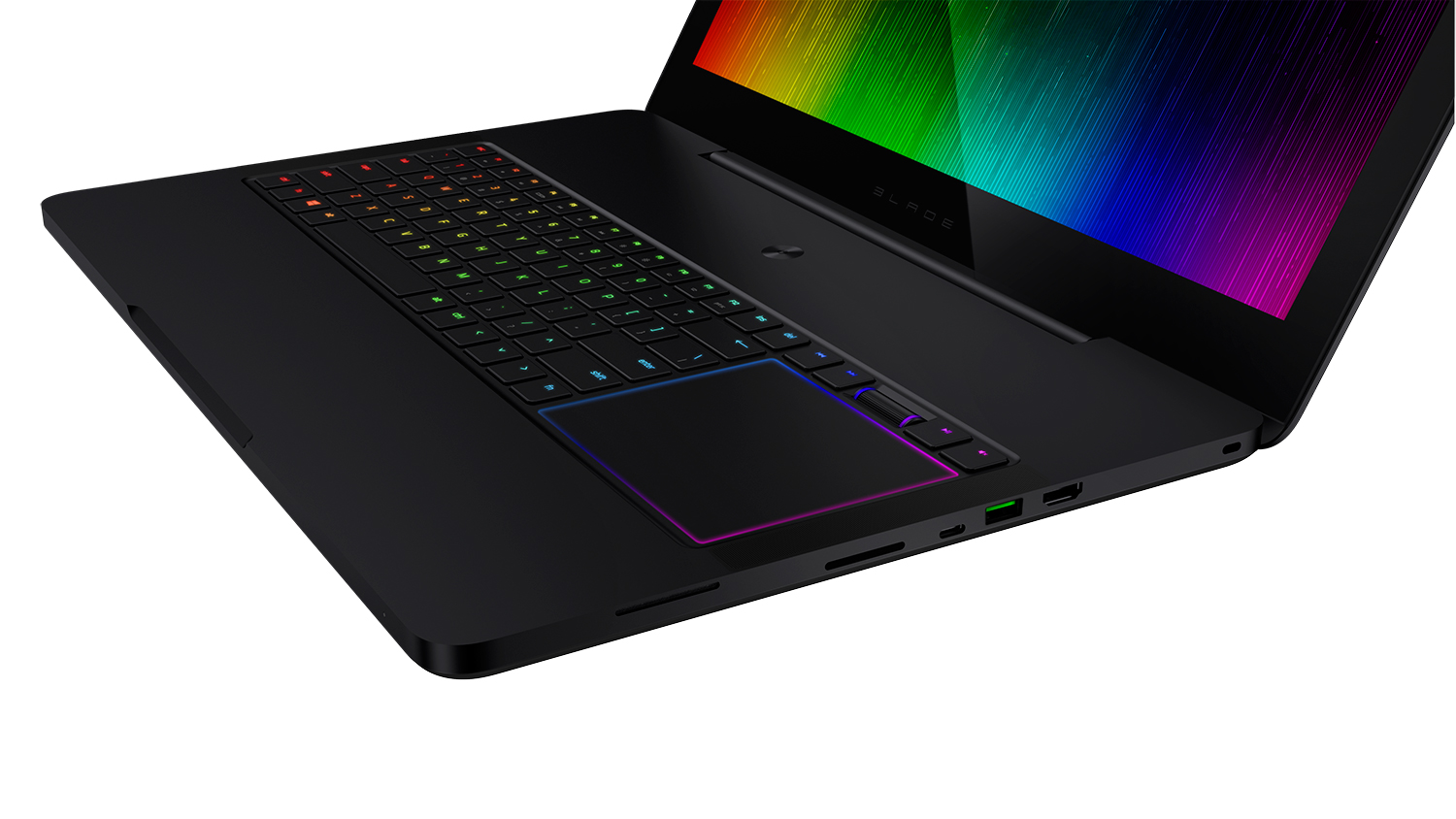 Además la Razer Blade Pro es la primera notebook que utiliza los interruptores Ultra-Low-Profile Mechanical de Razer. Cada interruptor incluye un accionamiento real y un punto de restablecimiento. La presión se registra con 65 gramos de fuerza, imitando la sensación de los teclados mecánicos de tamaño completo. El teclado y el trackpad también están potenciados por Razer Chroma™. Esta tecnología libera la serie virtualmente infinita de efectos de iluminación deslumbrantes que pueden ser personalizados por el usuario o sincronizarse para desplegar los eventos de los juegos.