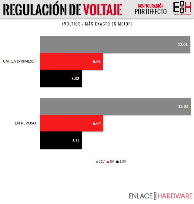 El estándar ATX especifica que el rango de tolerancia aceptable para las fluctuaciones de voltajes en los rieles de 3V, 5V y 12V es del 5%.