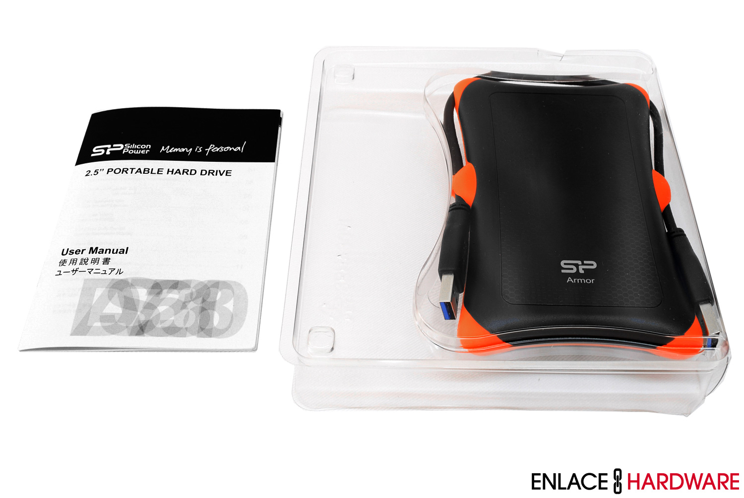 Silicon Power ha incluido un manual de usuario compacto y un cable USB 3.0. Por su lado, el Armor A30 1TB está almacenado en una base plástica perfectamente cubierto contra caídas durante el transporte o manejo del producto.
